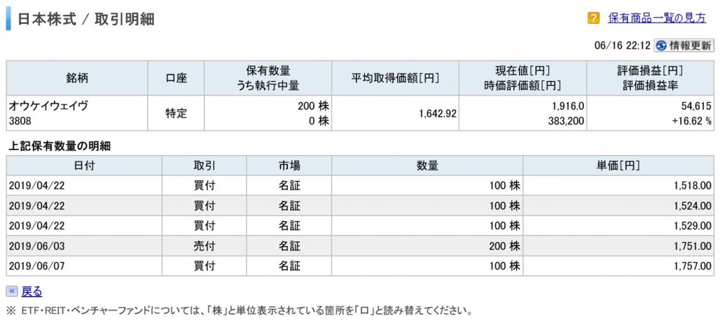 私としては、先日売った分を安く買い戻したかったのですが、1枚だけ高値で買い戻し、ただ単に現金を減らし、平均取得単価を上げるという愚行に出ていました。