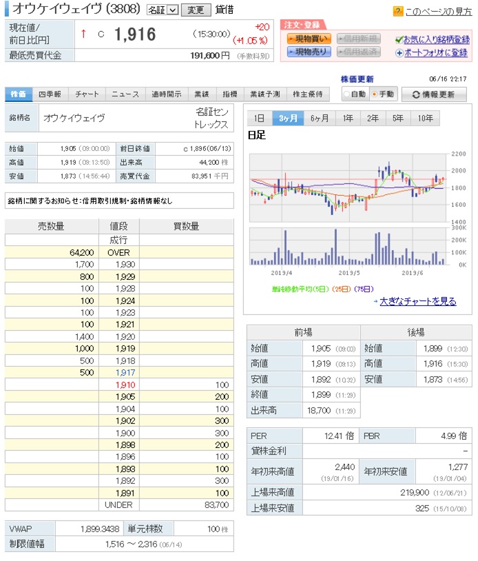 仮想通貨関連銘柄としてオウケイウェイブを始めて買ったのが4月22日。すでに3か月か経過しました。
